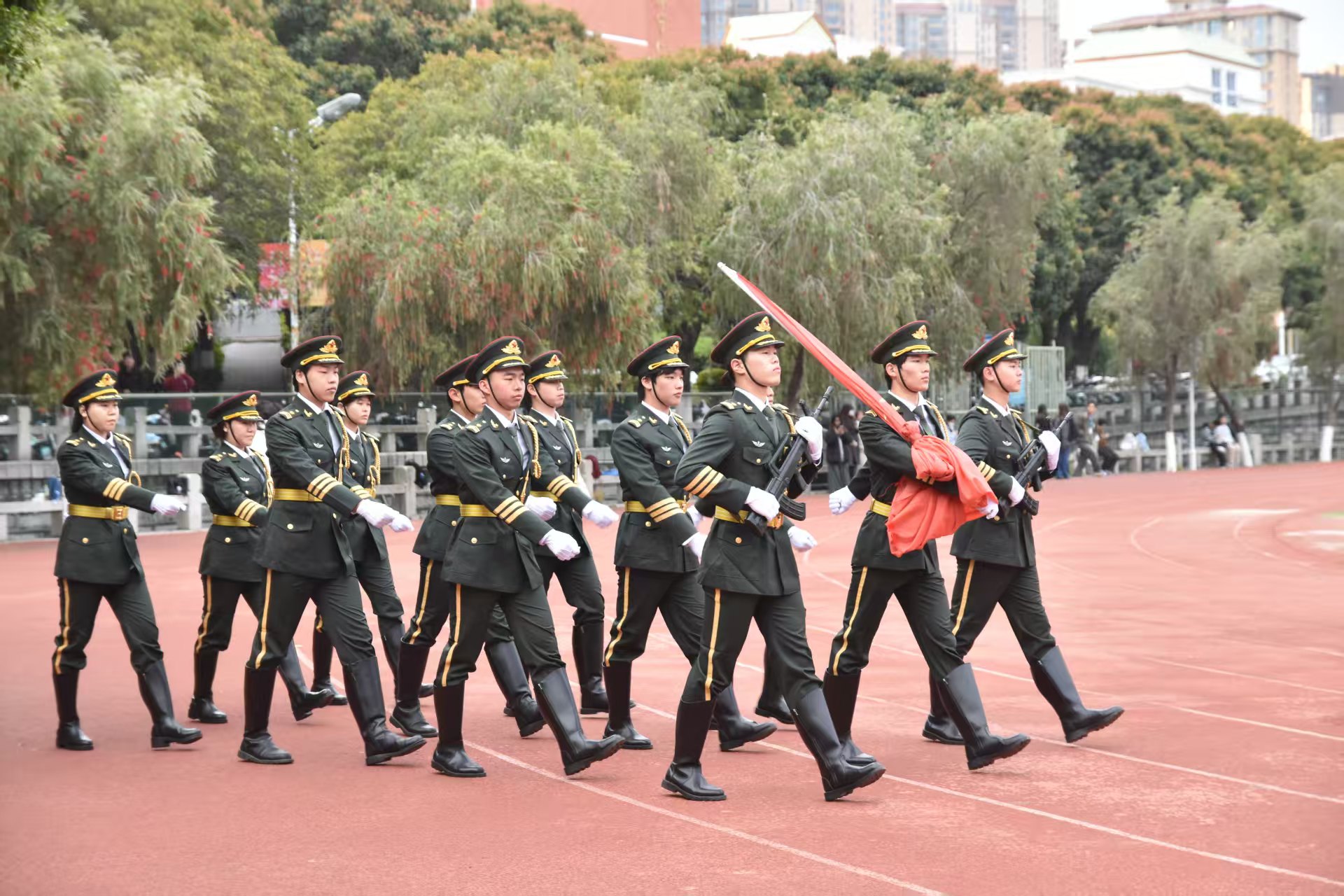 3月16日上午,我校在主校区第一田径运动场举行新学期首次升国旗仪式。校党委副书记陈晓风,有关职能部门负责人,各二级学院(系)分管学生工作党委(党总支)负责人,全体辅导员和校院两级学生干部代表共1000余人参加升国旗仪式。