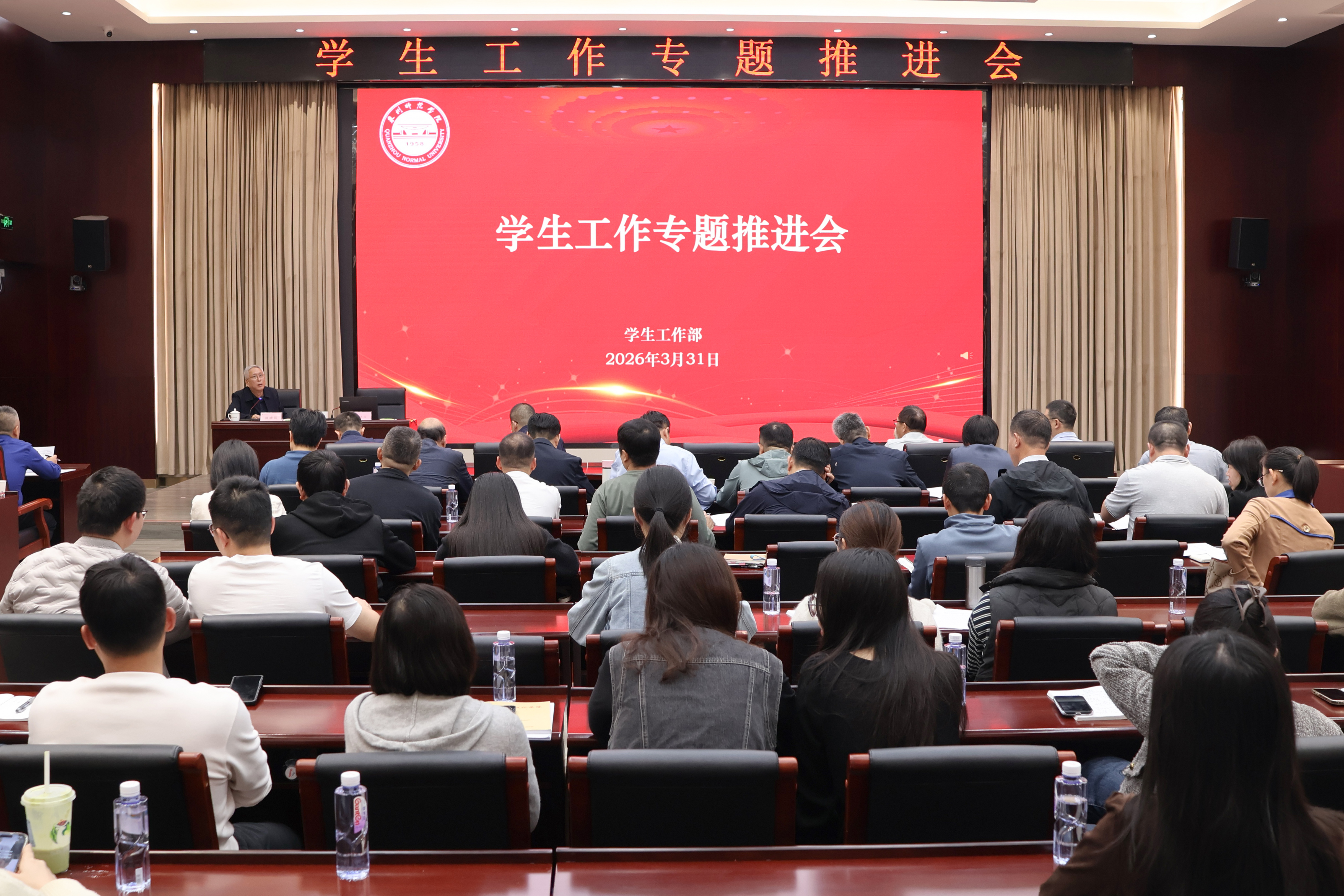 随后,陈晓风召开学生工作专题推进会,对当前毕业生就业、本科生考研、心理健康、宿舍管理等工作做了部署。学工部、团委全体人员,宣传部、教务处、科研处、社科处、后勤管理处、保卫处等部门负责人,各二级学院(系)党委书记、副书记,全体辅导员参加了会议。(学生工作部)